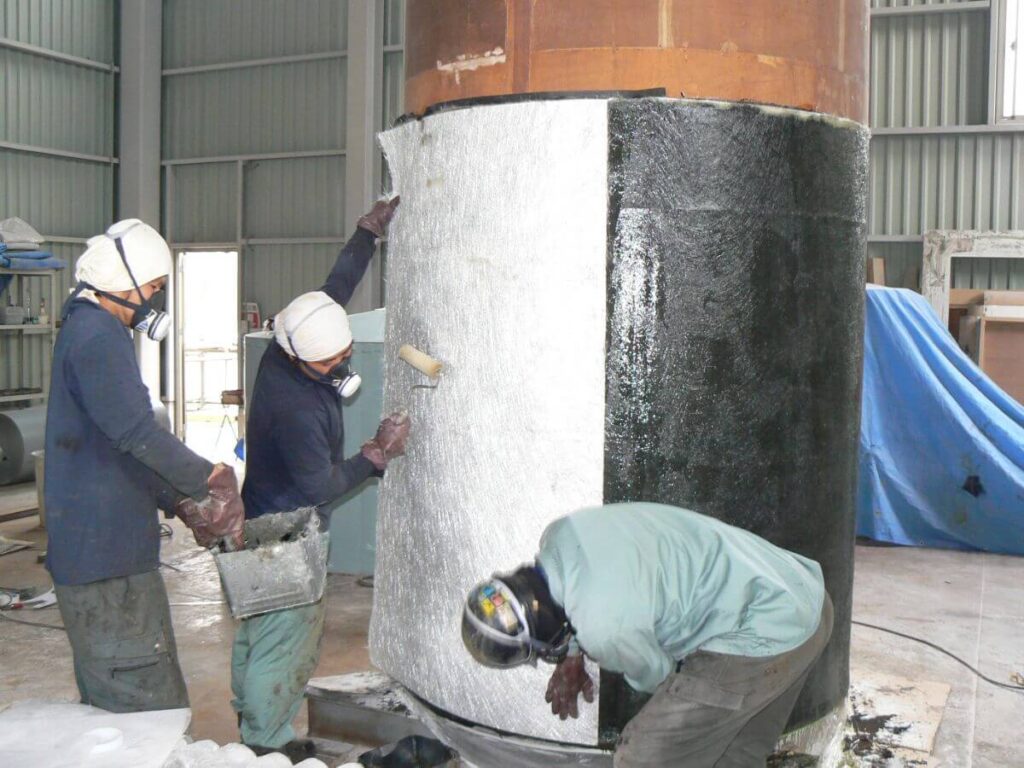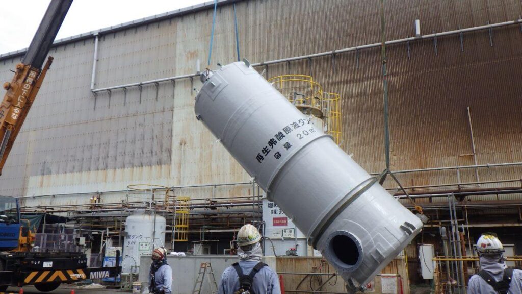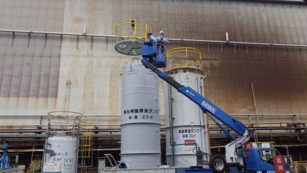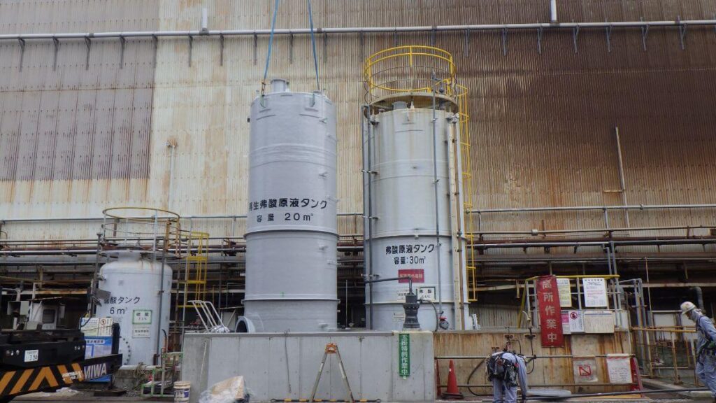 フッ酸タンク(テフロン+FRP製)設計・製作・据付